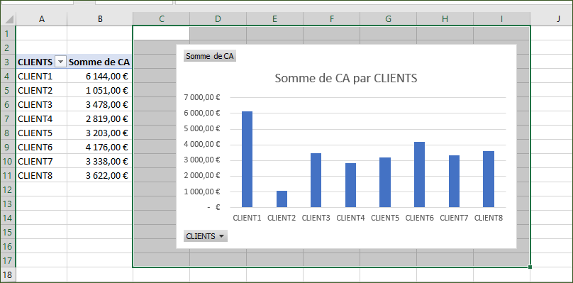 - Procéder de la même manière pour photographier le Tableau croisé dynamique positionné sur la feuille "Récap"