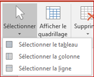 - Dans l'onglet Outils du tableau – Mise en page, cliquer sur le bouton Sélectionner puis Sélectionner la colonne