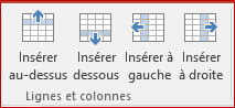 - Cliquer sur le bouton Insérer au-dessus ou Insérer au-dessous du groupe Lignes et colonnes