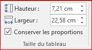 - L'option Conserver les proportions permet de modifier d'une manière similaire la hauteur et largeur du tableau
