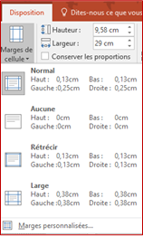 L'option Marges personnalisées permet de définir précisément la tailles des marges intérieures des cellules