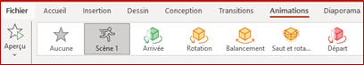 - Cliquer sur le bouton Scènes pour accéder aux différentes animations proposées