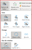 Pour chaque animation, des Options d'effet permettent, selon les cas, d'en modifier le sens d'exécution ou l'intensité