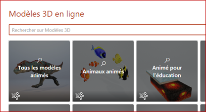 Certains modèles 3D sont déjà animés, on les repère par le petit symbole présent en bas à gauche de la catégorie