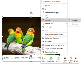 Si l’on souhaite garder la possibilité de déplacer une image avec sa légende comme un seul objet, il faut les regrouper